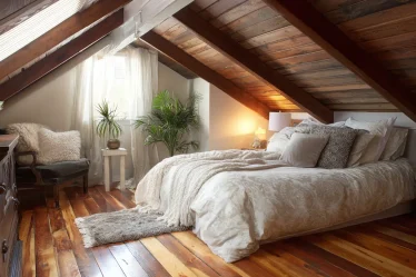 Choose teak or white oak for warmth. Make sure your ceiling is high enough. Low ceilings and heavy frames feel cramped.